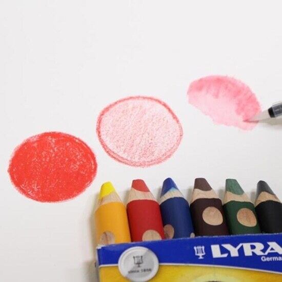 水玉模様が可愛いグルーヴシリーズ。 色鉛筆、クレヨン、水彩の3種の描き心地が楽しめる水彩色鉛筆。 柔らかめの芯なので弱い力でも色が出やすく、軸が短く太いので、小さな手でもお絵かきを存分に楽しめます。