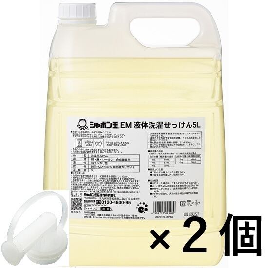 シャボン玉 EM液体洗濯せっけん 5L×2個。植物性油脂100%の液体洗濯石けんです。 詰替えタイプ。お得な5リットル入りです。