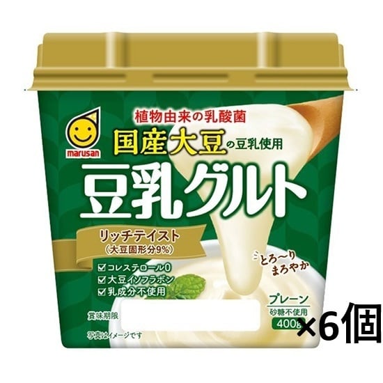 【冷蔵便】ムソー マルサン 国産大豆の豆乳使用 豆乳グルト 400g×6個。リッチテイスト。とろーりまろやか。プレーン大豆イソフラボン。植物由来の乳酸菌。国内産大豆の豆乳使用。
