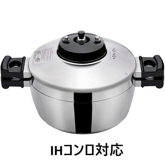 「オモリを傾けて排圧するのが怖い」「内鍋にご飯がくっつくので洗うのが大 変」「IHコンロで使える鍋がほしい」「片手鍋では取扱いが不便」という愛好者の声から改善を重ね開発した理想の炊飯圧力鍋です。