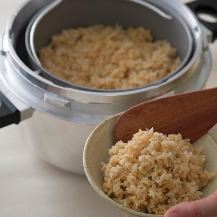 もちもちで甘くおいしい玄米ご飯が炊き上がる