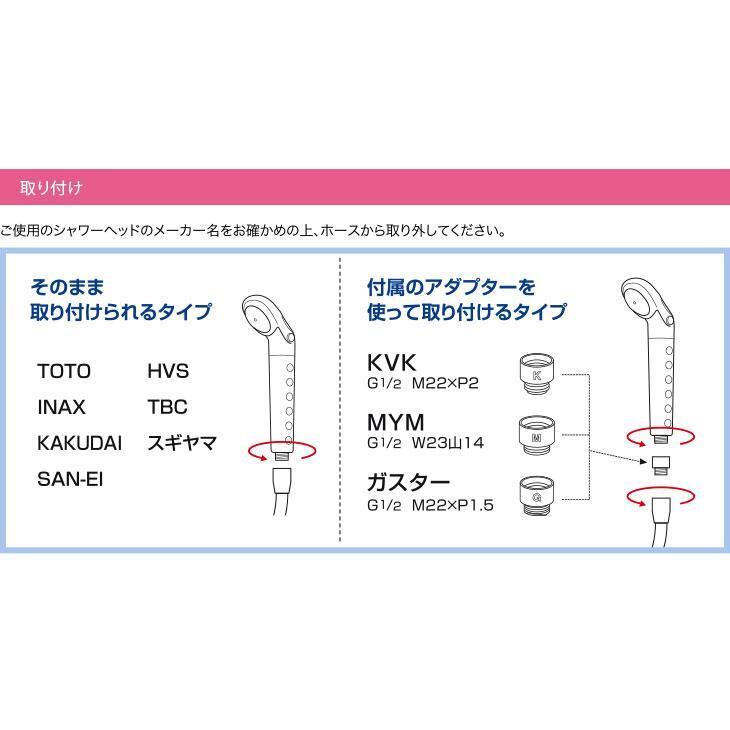 水道水に含まれている残留塩素を繊維状活性炭の優れた除去能力でしっかりと除去するシャワーヘッドです。
