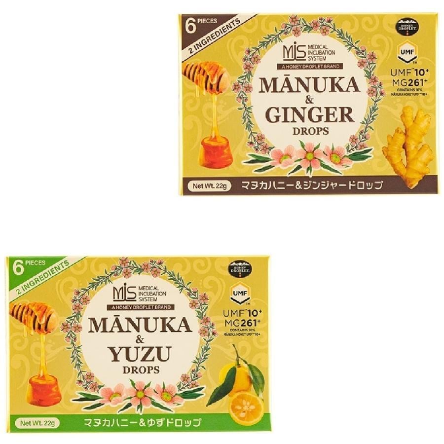 オーサワ マヌカハニー&ジンジャードロップ 22g(6粒)。ゆずドロップ 22g(6粒)。2種類の中から選べる×4個。特許取得の独自製法!