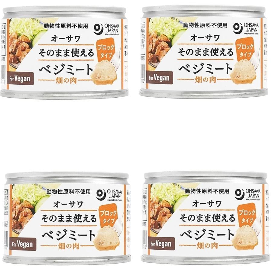 ぶつ切り肉状。オーサワ そのまま使えるベジミート 畑の肉 (ブロックタイプ) 170g×4缶。